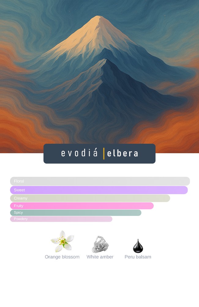 From the serene peaks of Mount Elbrus comes Elbéra—a fragrance that captures the golden hour between light and darkness. It is a scent of quiet confidence, luminous beauty, and timeless warmth.